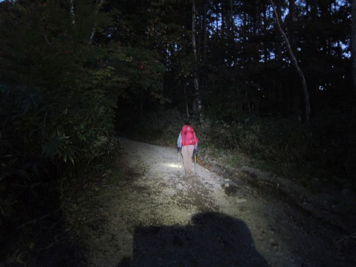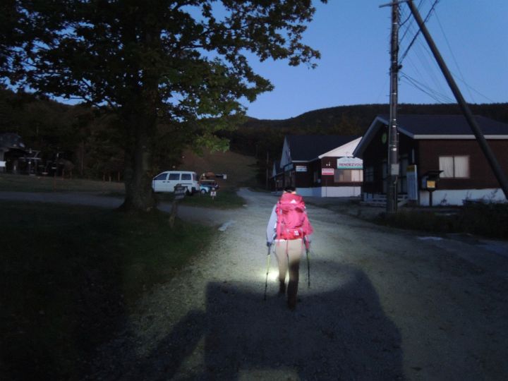 5:20 登山スタート。登山口がどこかはっきり分からなかったが、ゲレンデの方角へ進むと道標が出てきた。