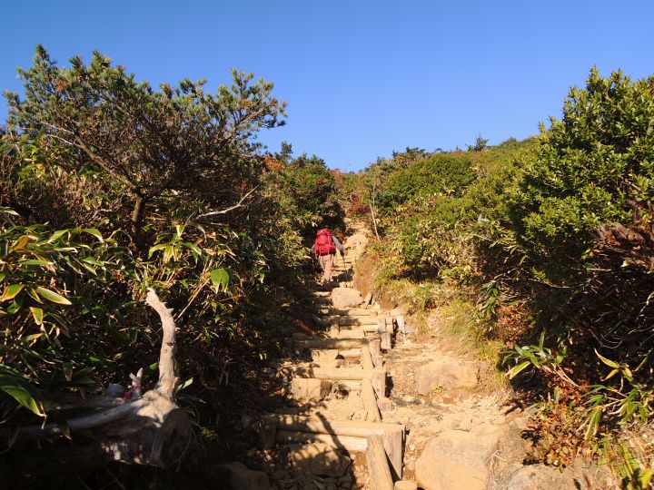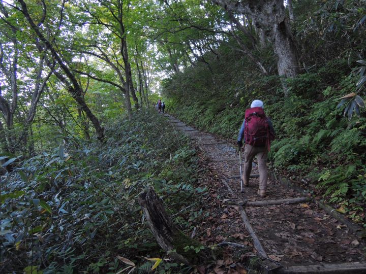 傾斜は増してきたが、上りやすく整備された木道が続く。