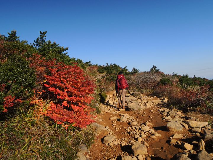 登山道の周囲も紅葉が鮮やか。
