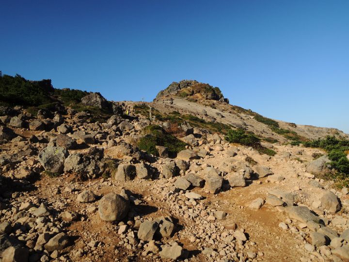 広いところまで来ると、もう一段上に岩稜が見えてきた。