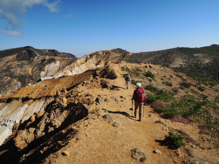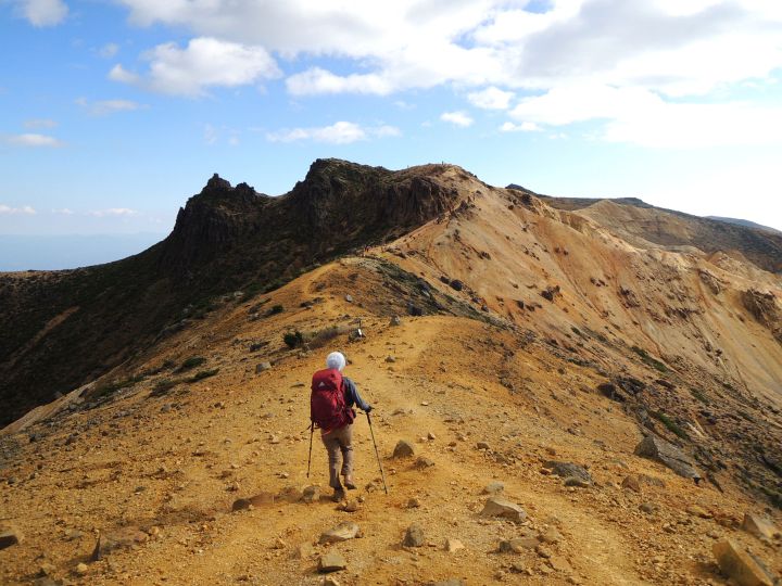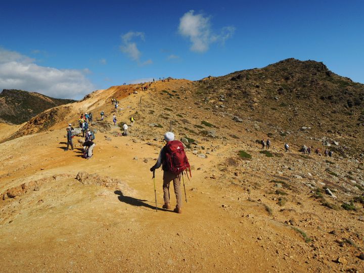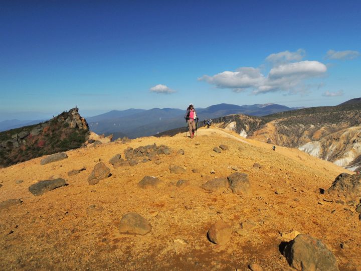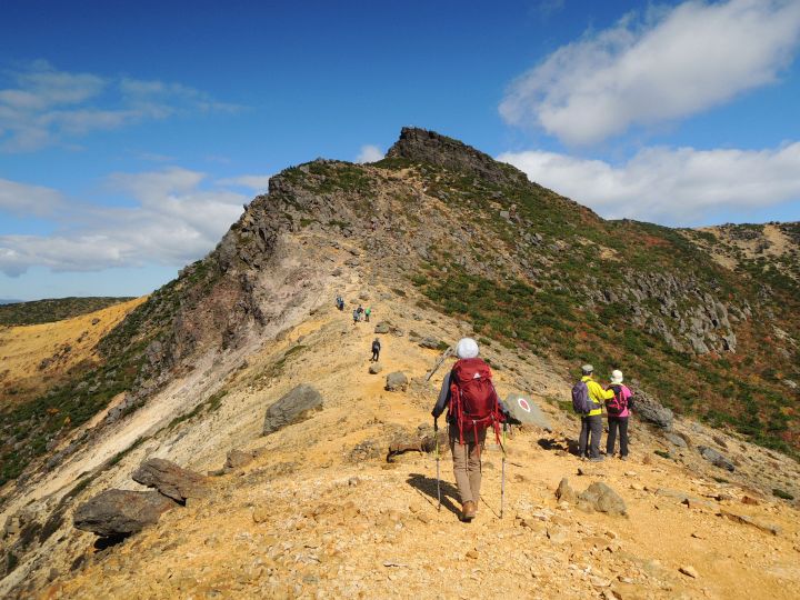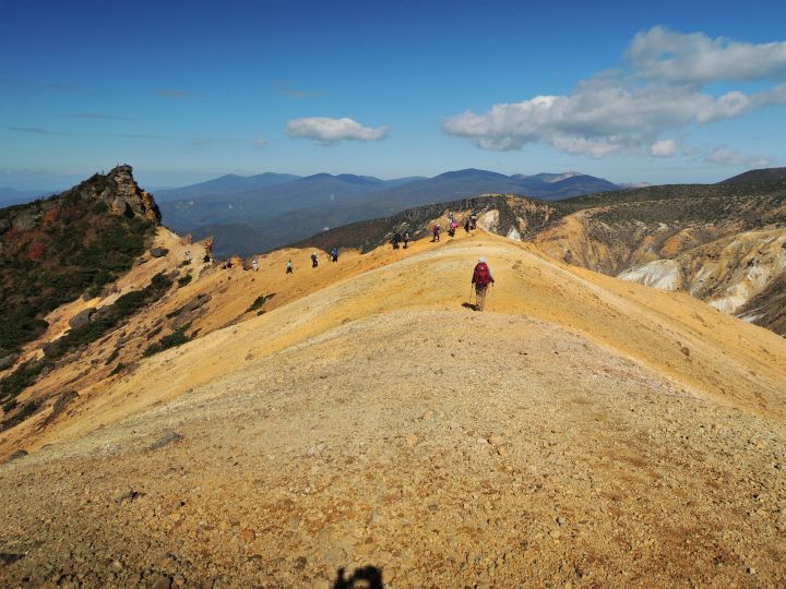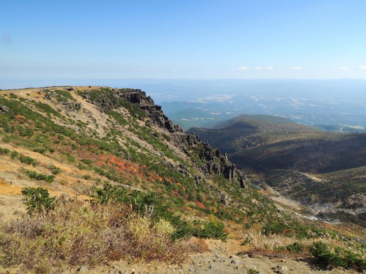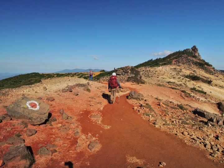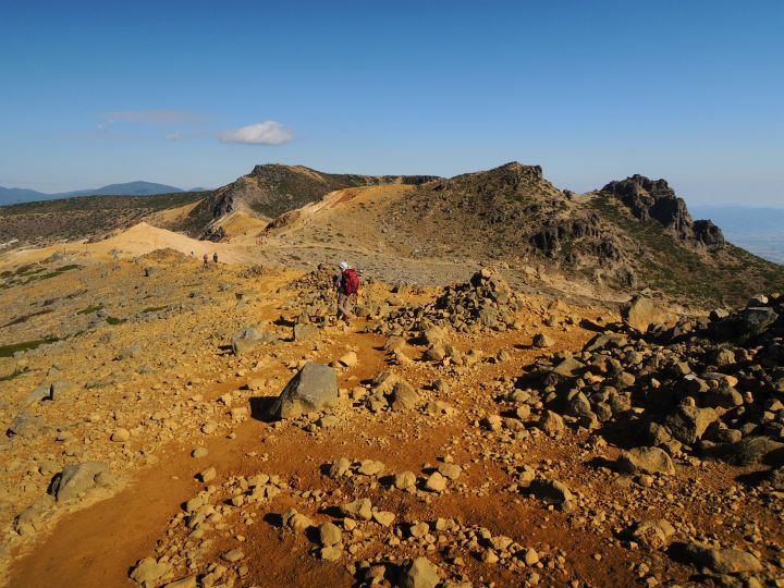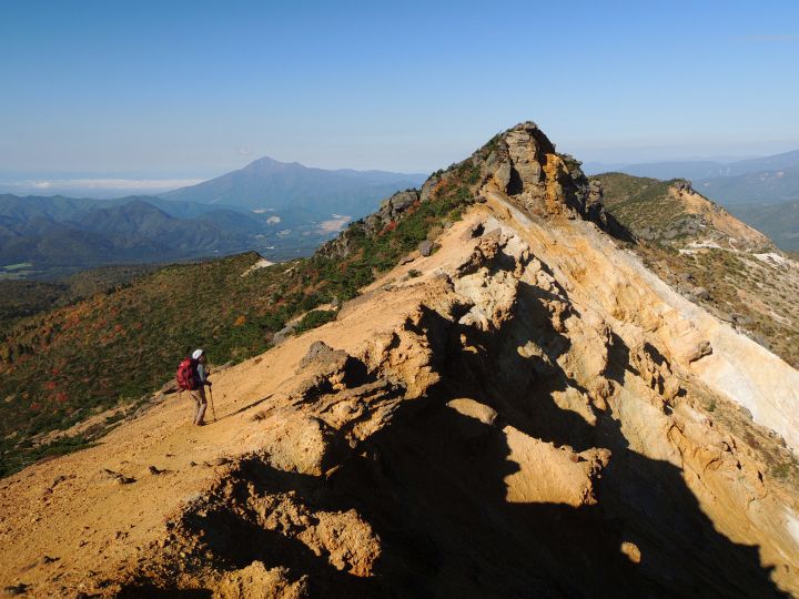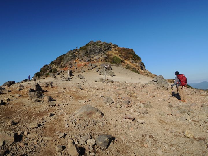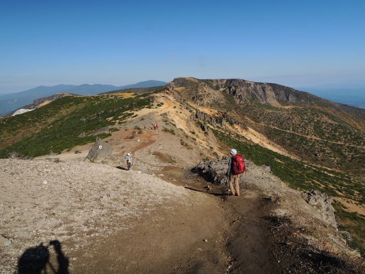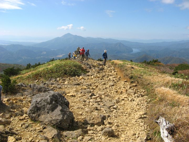 広々とした山頂稜線に出た。高村光太郎が詩に歌い、妻の智恵子が「ほんとうの空」と呼んだ安達太良山の青く澄みきった空が、目の前に広がっていた。