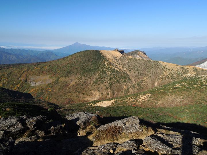 南側には和尚山。左は前ヶ岳。右奥に那須連山が幽かに見えていた。