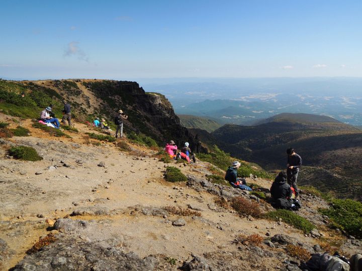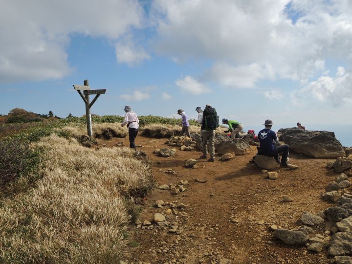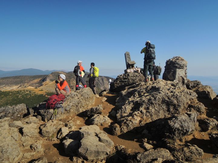 山頂部は奥行きがあって広いので、登山者は思い思いの場所で休んでいた。