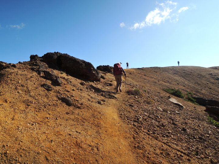 赤茶けた土の上に大小さまざまな岩がゴロゴロしていた。火山であることが一目でわかる。