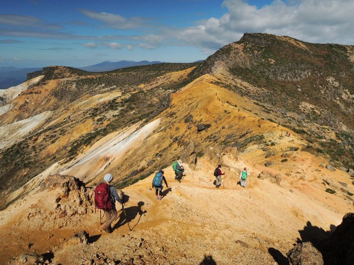 1900年の大規模な水蒸気爆発で長径300m、短径150mの火口が形成され、沼ノ平にあった硫黄精錬所は壊滅。72名の死者を出した。1997年にも登山者4名が火山性ガスで亡くなる事故が発生し、現在沼ノ平コースは通行禁止となっている。