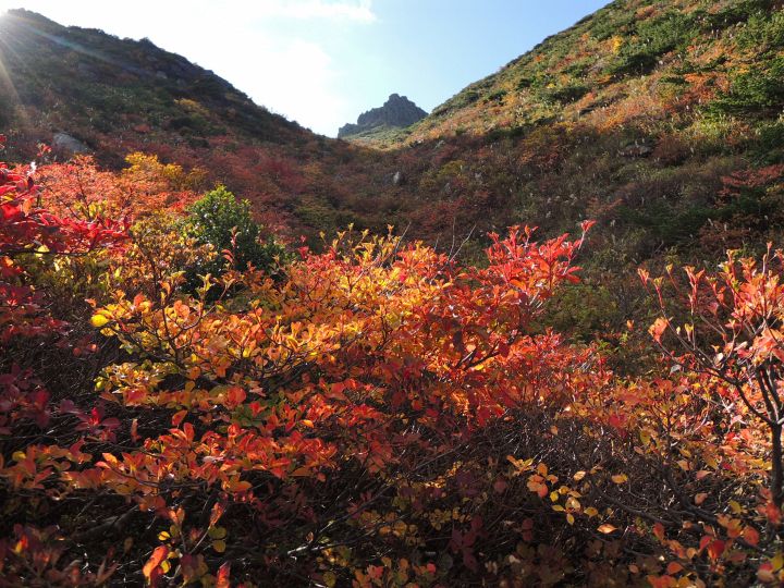 鉄山の東側斜面も一面に渡って紅葉していた。