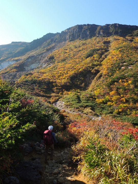 遠くからだと分からなかったが、箕輪山へ向かう鞍部も綺麗に紅葉していた。安達太良山の他の山とはまるで雰囲気が違った。