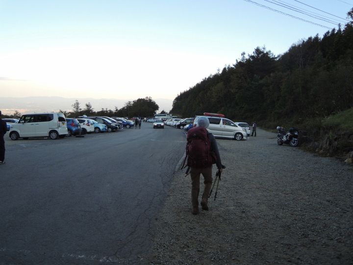 あだたら高原駐車場に到着。すでに車の数は多かったが、広大な駐車場なので空きはいくらでもあった。