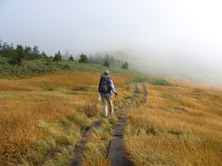 このまま晴れることを願いながら、木道をゆっくり進む。