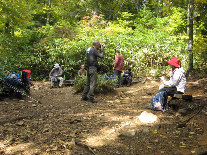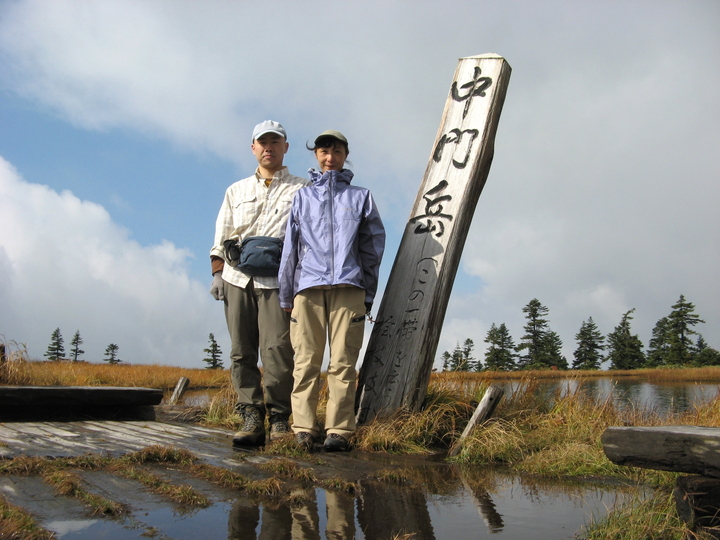 9:15 中門岳(2,060m)に到着。にぎやかな学生グループが記念写真を撮っていた。