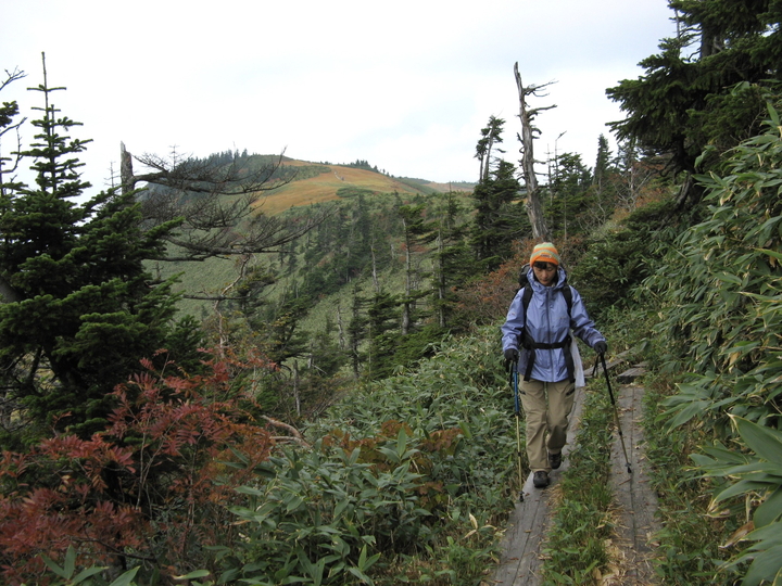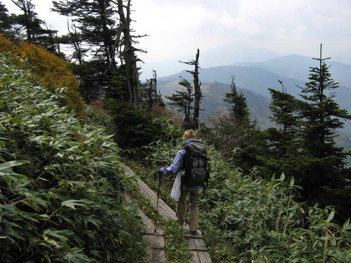 しばらく樹林帯の木道をゆるやかな上る。