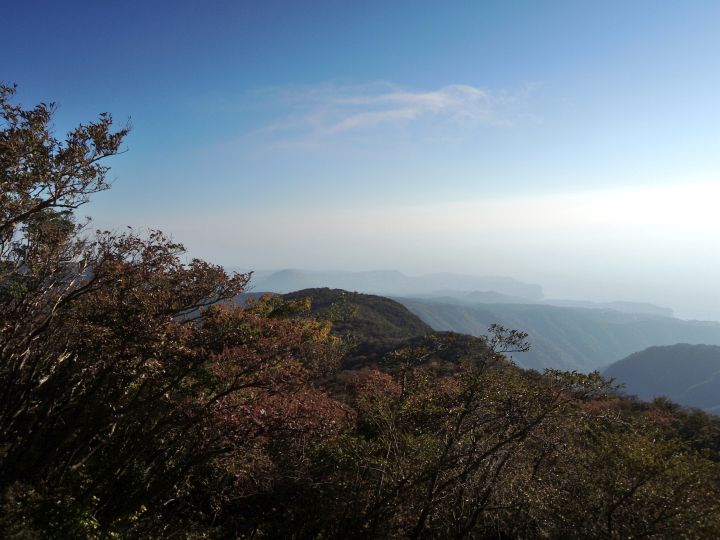 2時40分起床、3時出発。圏央道から東名高速に乗り継ぎ、天城高原ゴルフ場に6時15分到着。広い登山者用駐車場には車が数台のみで、予想以上に静かな山歩きが楽しめた。右肩痛のため今回も右手は使えなかったが、クサリ場などの急坂がほとんどないので、右肩への負担は最小限で済んだ。富士山がクリアに見えるスポットがほとんどなくて少々残念だったが、朝からの快晴で気持ちよく歩くことができた。