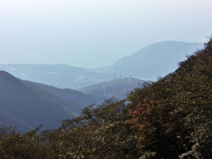 南西方面の眺め。真ん中左の三筋山にも風車が見えた。