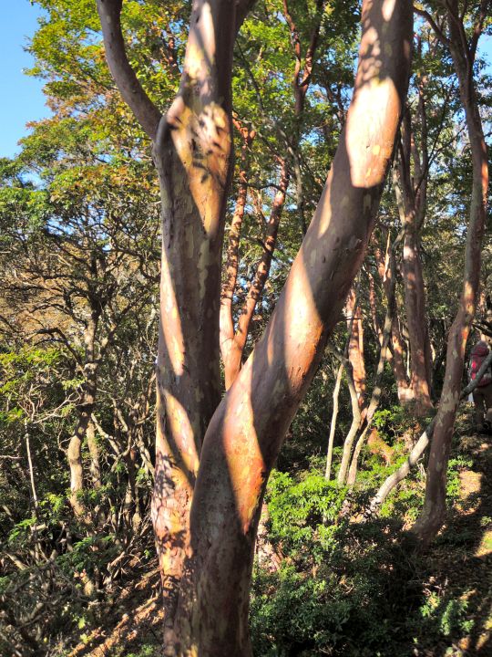 橙色の平滑な樹皮が特徴的なヒメシャラの木。