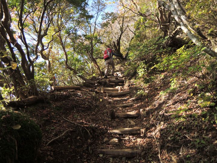 分岐点からは木段が続く。どんどん下った。