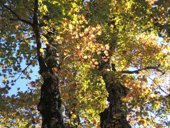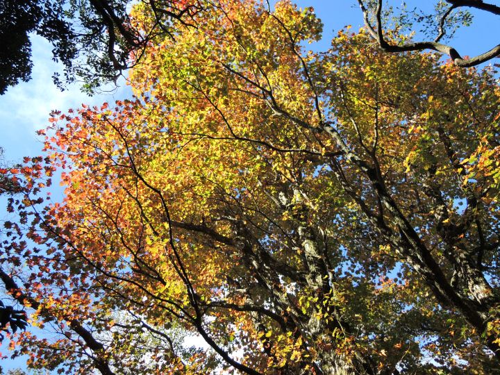 鮮やかに紅葉したハウチワカエデ。