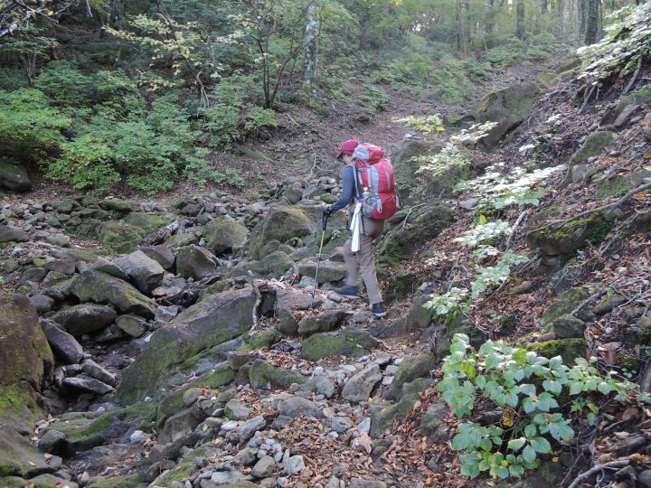 涸れ沢を何度か横切った。
