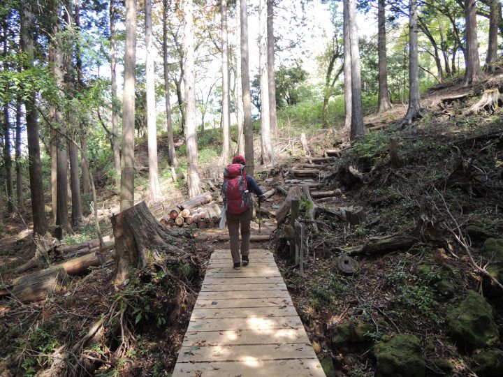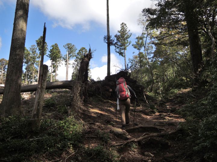 伐採地のような場所を通過。コースは樹林帯の日陰が多く、樹間に見える青空が心地よかった。