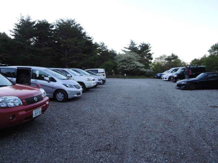 観音平に到着。すでに半分ほどスペースは埋まっていた。前日からと思われる車がかなり下の方まで路駐していた。