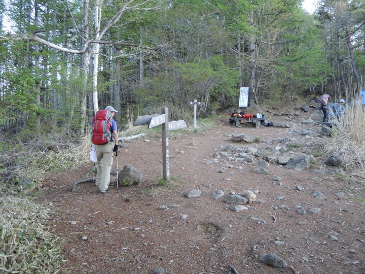 14:40 やっと八ヶ岳横断歩道に出た。腰が痛くなっていたので、下りが一段落してホッとした。