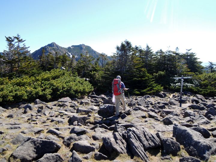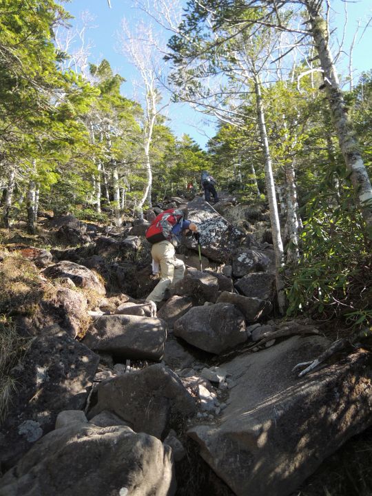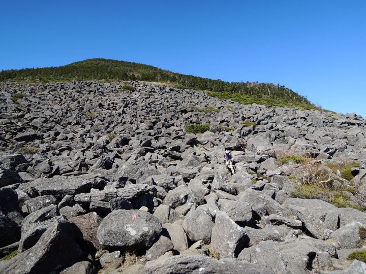ハイマツを抜けると大岩だらけの岩石帯となる。迂回路を進みたかったがルートが見つからずそのまま進んだ。