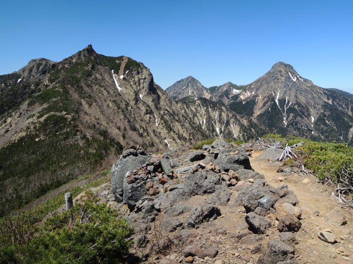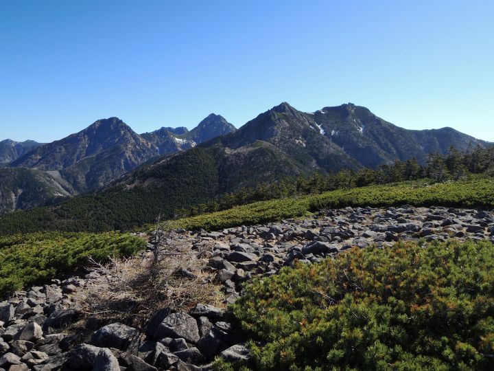 左からアサヨ峰、甲斐駒ヶ岳、仙丈ヶ岳、鋸岳。