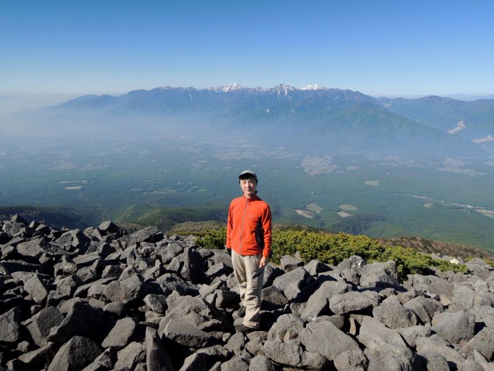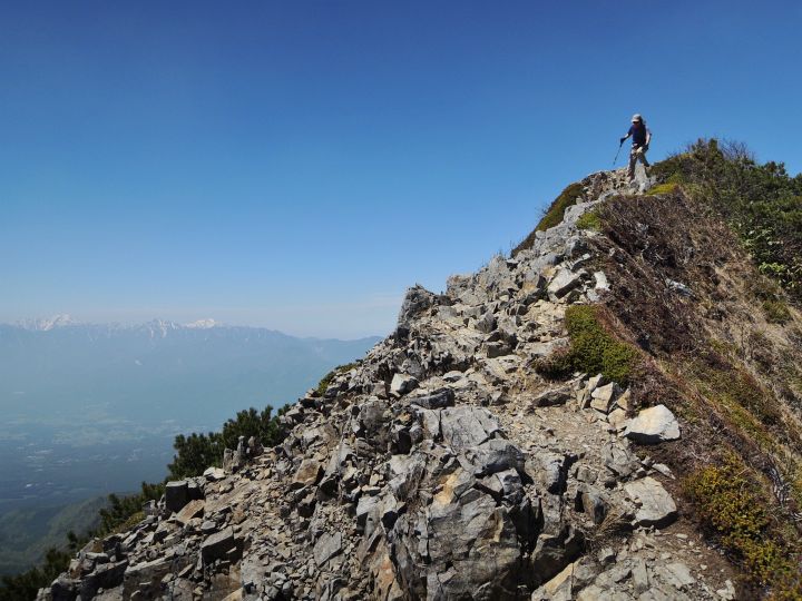 6:50 眺めのよい露岩で小休止。南アルプスがくっきり見えていた。