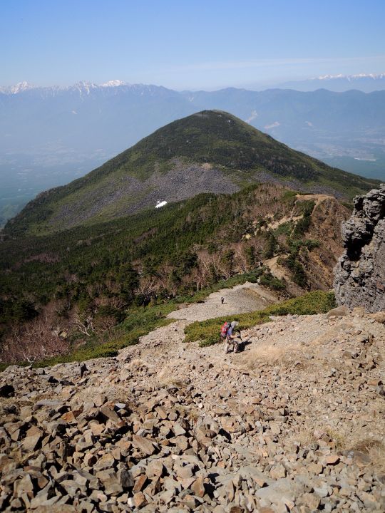 背後には編笠山。時折振り返って、眺めを楽しみながら上った。
