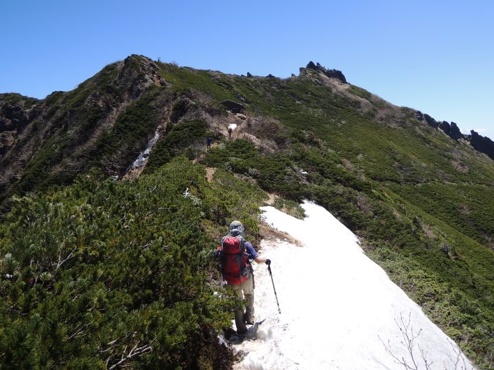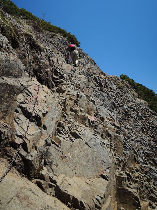 ギボシの急峻な岩峰を右へ巻いて進む。
