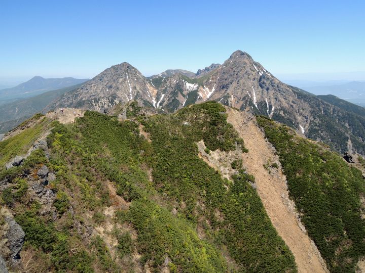 三ツ頭付近から、これから歩く稜線を見下ろす。