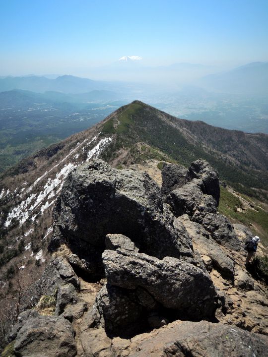 南側には三ツ頭へ続く稜線が眼下にのびて、その奥には富士山。