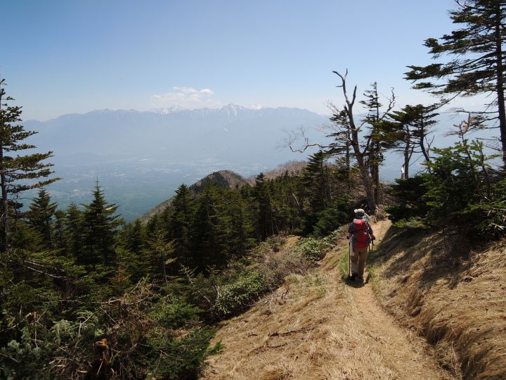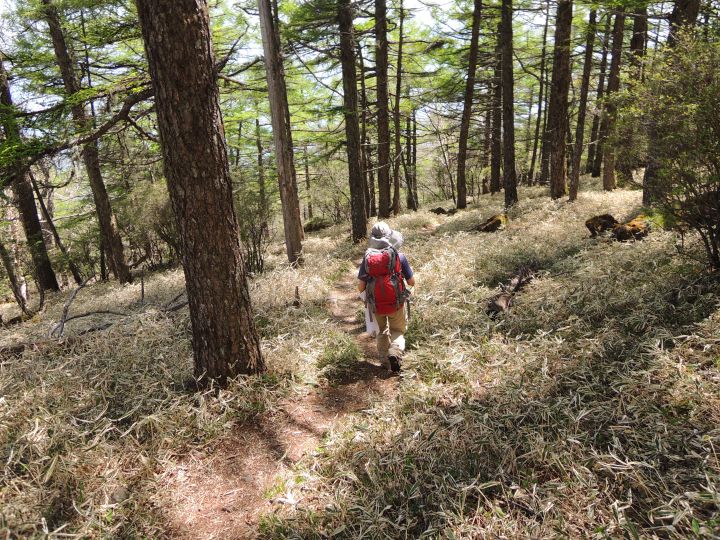 樹林が切れると南アルプスが見えた。快調なテンポでどんどん下った。