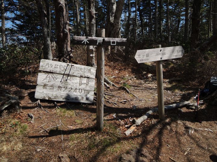 13:00 前三ツ頭分岐を右側へ下る。道標には木戸口公園まで50分とあった。