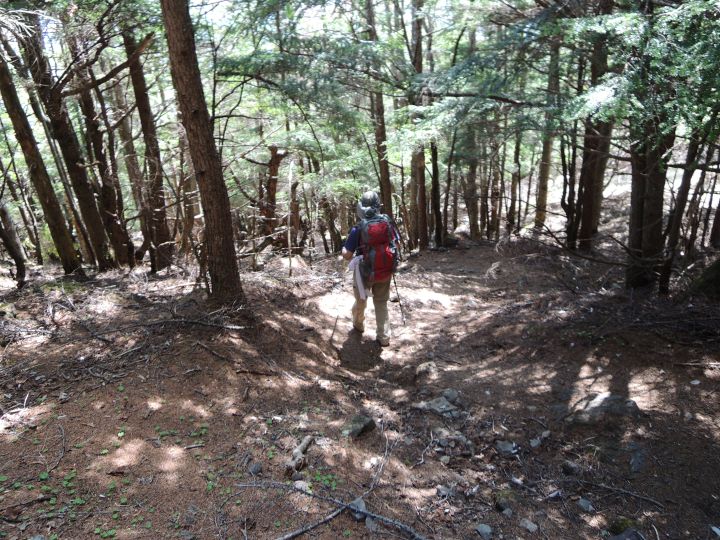 シラビソの樹林帯を下る。ダケカンバも目に付いた。