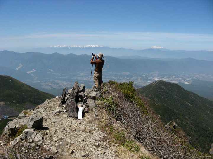 左から三宝山、甲武信ヶ岳、小川山、国師ヶ岳、金峰山。国師ヶ岳の下には瑞牆山も見えていた。