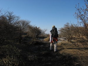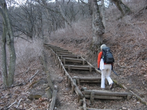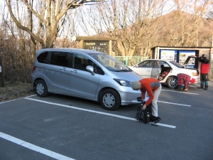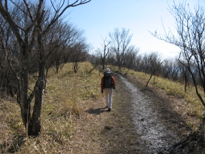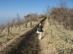 荒山高原の霜はきれい融けてになくなっていた。上ってくる多くのハイカーとすれ違いながら山を下りた。