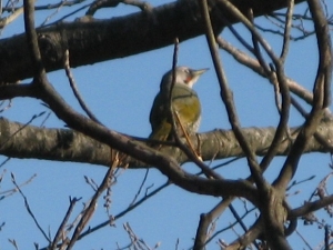 野鳥の鳴き声がしたので振り返ると、アオゲラが枝に留まっていた。