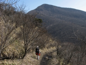 地蔵岳と荒山を正面に見ながら平坦な道を進む。