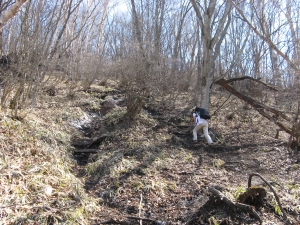霜が融けてドロドロの山道を上ると、15分ほどで眺めの良い稜線に出る。