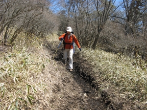山頂直下の急坂を上る。トレーニングのつもりで休まずにどんどん上った。