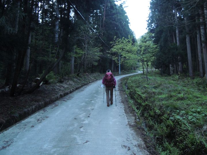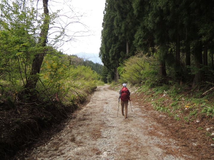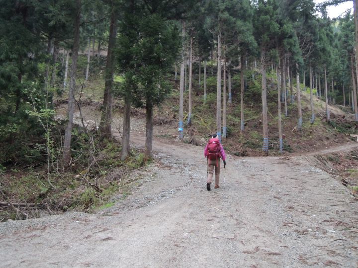 何度か林道を横切りながら進む。