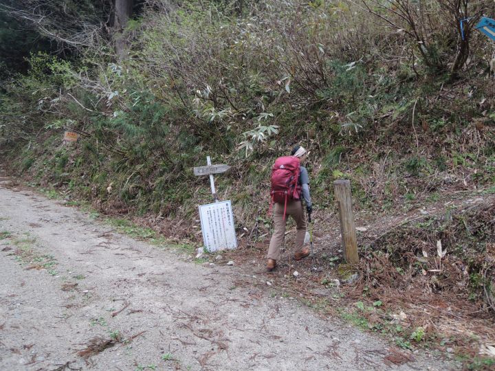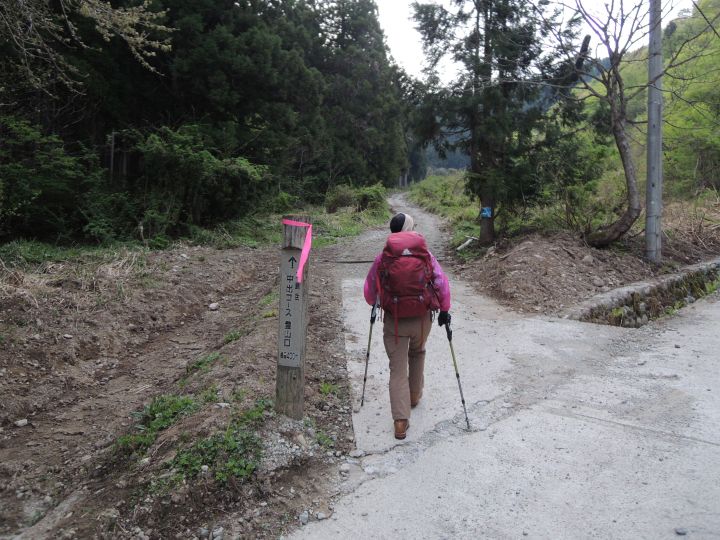 中出コース登山口と書かれた道標にしたがって進む。