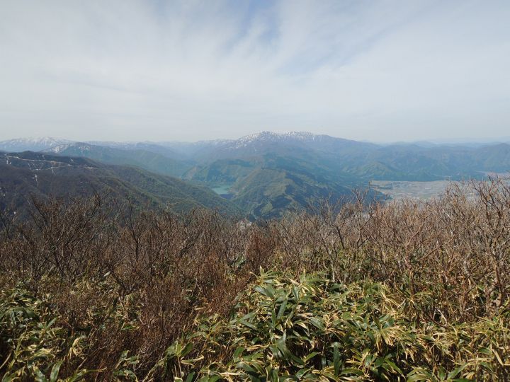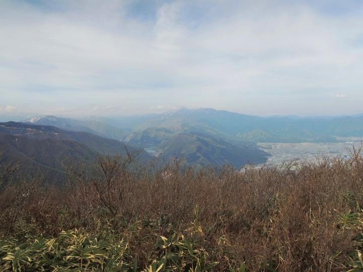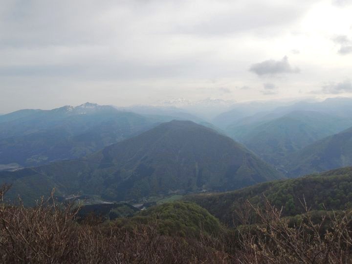 東方面。東尾尾根の左は木無山。木無山の左上は芦倉山で、上にうっすら見えるのは大日ヶ岳。木無山と東尾根の間、奥に見えるのは毘沙門岳。
