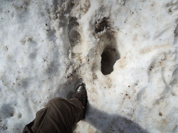 足元には深い踏み抜き跡。