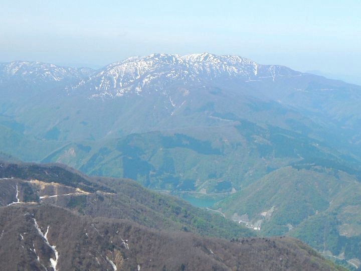 北北東方面には白山と別山が見えた。左は経ヶ岳。手前には九頭竜川が流れている。
