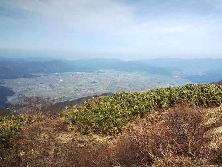 西北西の眼下には大野市街地が広がる。