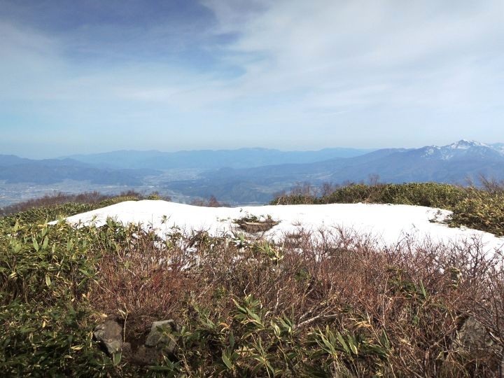 荒島岳の左、東方面。真ん中は木無山。日によっては乗鞍岳や御嶽山も見えるが、この日は雲の中。