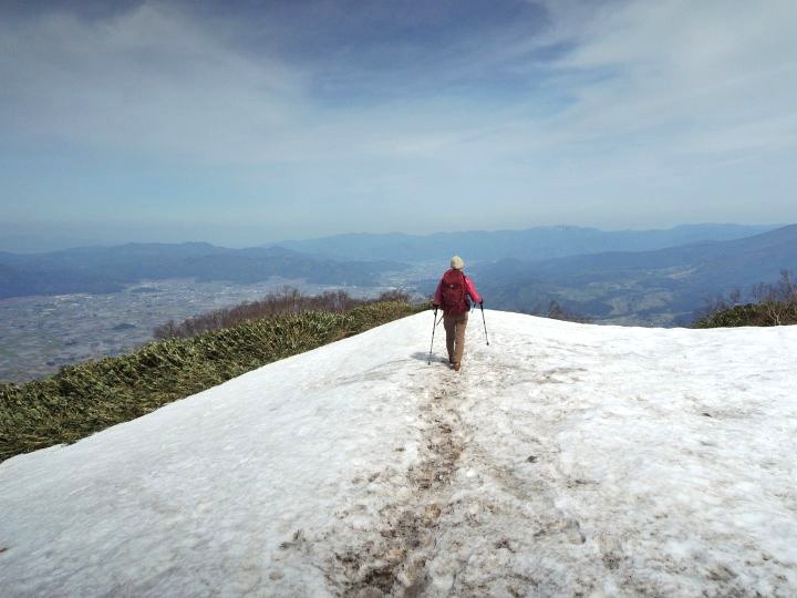 再び残雪を歩いて、10:00 前荒島岳を通過。#