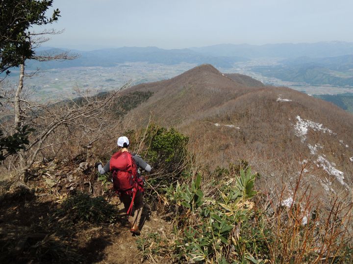 前荒島岳を眼下に見ながら急坂を下る。
