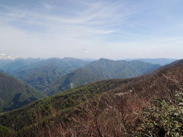 西南西方面。真ん中に銀杏峯と部子山。